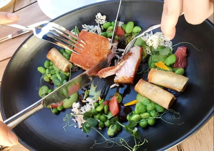 牛排跟其他菜一般吧,意想不到的是居然这里的猪肉做的很好吃,看图上咱们都在瓜分就知道啦~哈哈~吃完就回酒店休息了,晚安各位!