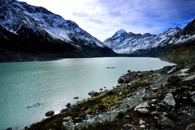 库克山国家公园位于新西兰,公园里面聚集着雪山、冰川、河流、湖泊、山林,以及动物和高原植被等,这里给人们的惊奇是其他地方所无法比拟的。屹立在群峰之巅的库克山顶峰终年被冰雪覆盖,而群山的谷地里,则隐藏着许多条冰川。有呈深赭石色的冰蚀湖,有清澈翠绿的雨水湖,山影碧波,风光无限,群山中最大的冰河属塔斯曼冰(Tasman Glacier),这是喜马拉雅山脉以外最大的冰川之一全长29公里,宽2千米,深600米。每天以23到45公分不等的速度,几乎让人察觉不到的,缓缓的下滑。在冰川内部,由于它的移动,带着山体的碎石下滑,加上阳光的照射,使冰川表面形成了无数的裂缝和冰塔,造形千姿百态,耀眼夺目。