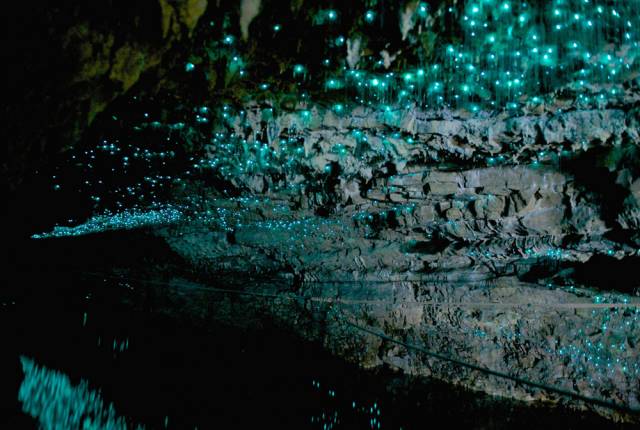 怀托摩萤火虫洞(Waitomo Cave,也称萤火虫洞、怀托摩洞,位于新西兰的怀卡托的怀托摩溶洞地区,因其地下溶洞现象而闻名。地面下石灰岩层构成了一系列庞大的溶洞系统,由各式的钟乳石和石笋以及萤火虫来点缀装饰。