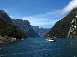 米尔福德峡湾是新西兰峡湾国家公园最大也是最著名的峡湾,河流向内陆延伸22千米,峡湾水面与山崖垂直相交,冰川被切割成V字形断面。峡谷下沉后就形成了现在的景观。米尔福德峡湾内群山合围,峭壁万仞,飞瀑流泉,冰川滢滢,给人以无限美感。米尔福德峡湾国家公园也是规模最大且 保存最完美自然景观的峡湾。