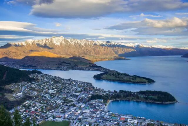 皇后镇(Queenstown)位于瓦卡蒂普湖 (Lake Wakatipu)北岸,是一个被南阿尔卑斯山包围的美丽小镇,依山傍水。其海拔高度为310米(1202英尺)根据地理学家的研究,在距今15,000年前的冰河世纪,皇后镇是被冰河所覆盖的。人口相当的稀少,只有约18,000人,其中欧美人士约占80%,亚洲10%,其它种族则为10%。新西兰因其多变地理景观,被喻为“活地理教室”,而皇后镇是全国地势最险峻美丽而又富刺激性的地区,故该区以“新西兰最著名的户外活动天堂”而得名。