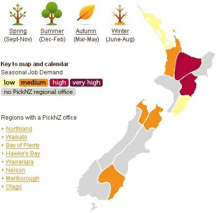 季节不同,分布于南北岛种植不同水果的果园(orchard)、葡萄园(vineyard)、包装厂(pack-house)用工需求就不同,因此,找一个合适的季节开始打工旅行,就能够将资金和时间合理分配到工作和旅行中。